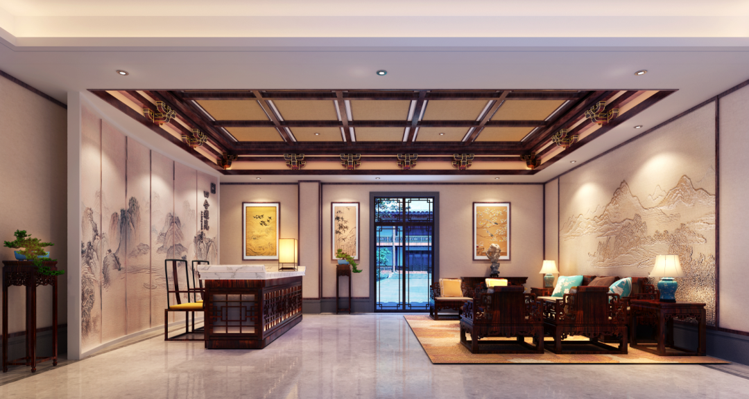 本案景秀家园四院酒店,采用新中式风格设计,侧重于传统空间意境的再现,对传统生活、文化习惯和精神意识层面进行思考,设计中更关注传统精华空间的继承,试图用现代主义的句法将古典语汇与现代语汇相结合,聚力提升空间品质。